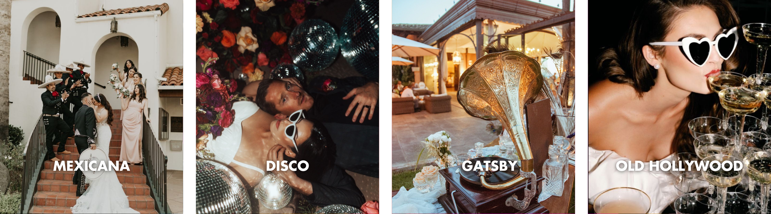 Las fiestas temáticas volvieron, desde las cenas de ensayo y las fiestas de bienvenida hasta las mismas ceremonias. Ahora se centran en la diversión con temas ligados al amor y alegría, como noches de discoteca, Old Hollywood, Gatsby, etc. El chiste es tener un concepto de principio a fin sin que se vea desaliñado, sino más moderno y divertido sin perder el concepto principal que es la boda.